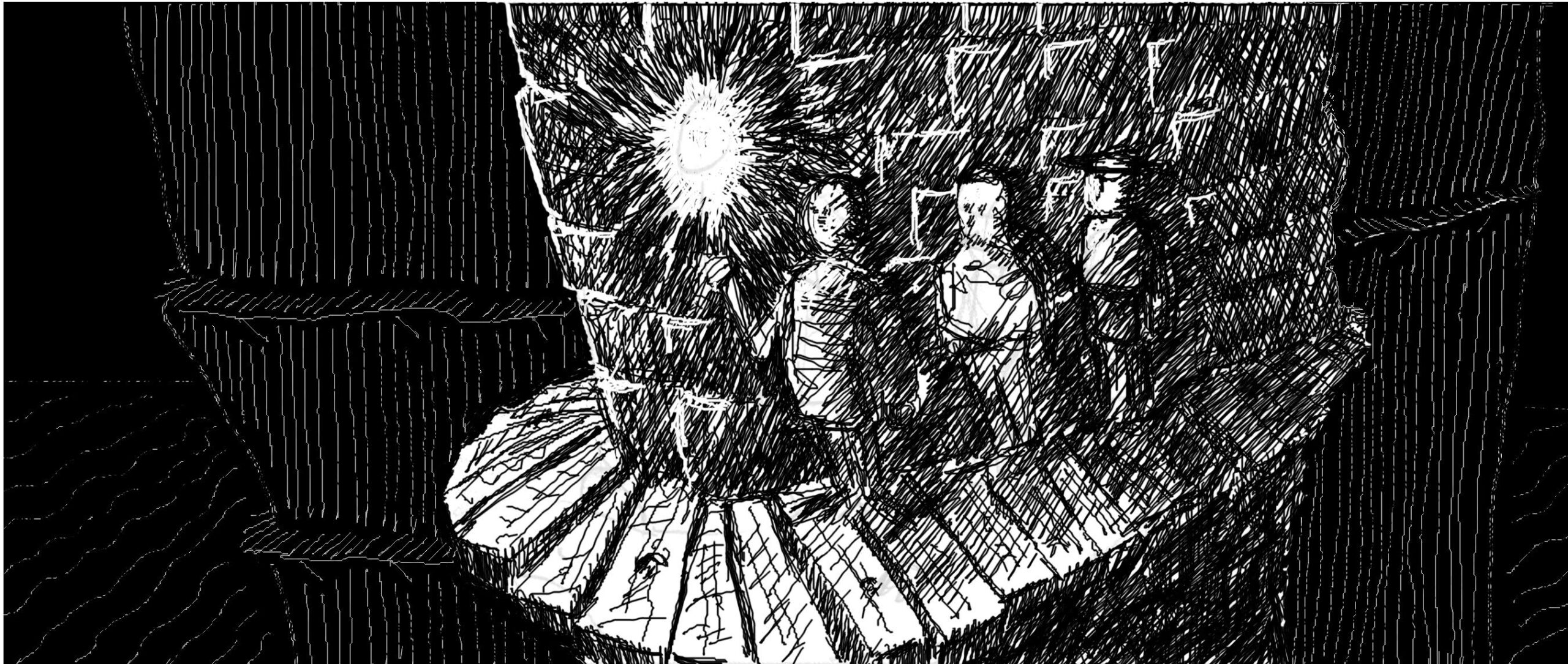 The corridor is dank and the air tainted with the smell of unpleasant unknown things. Water drips from the ceiling and trickles down the walls forming thin puddles on the floor which splash under your feet. Though your vision is monochromatic the walls are cool, darker than the water, which is warm and bright. As you approach, at first the dark walls seem to darken further, even to stifle warmth, drawing heat from all things nearby but this effect does not last and they soon brighten as long as you are nearby.